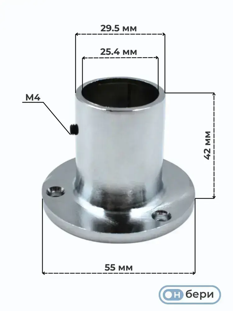 Фланец(КОМПЛЕКТ 2 ШТ) для труб хромированных D-25 мм, высокий, с фиксатором, торговое оборудование, система Джокер