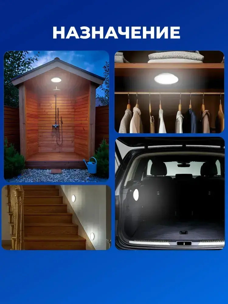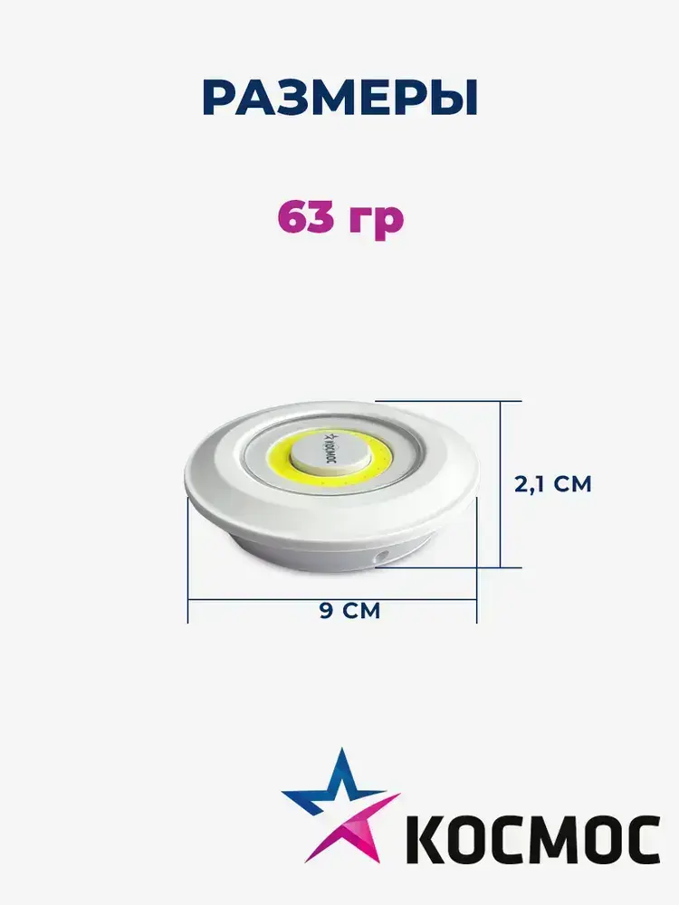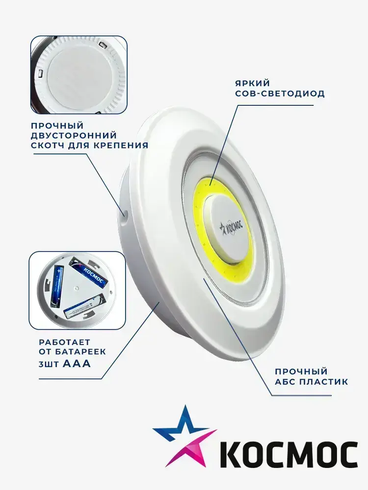 Фонарь подсветка КОСМОС KOC308B самоклеящаяся поверхность, двусторонний скотч и батарейки в комплекте