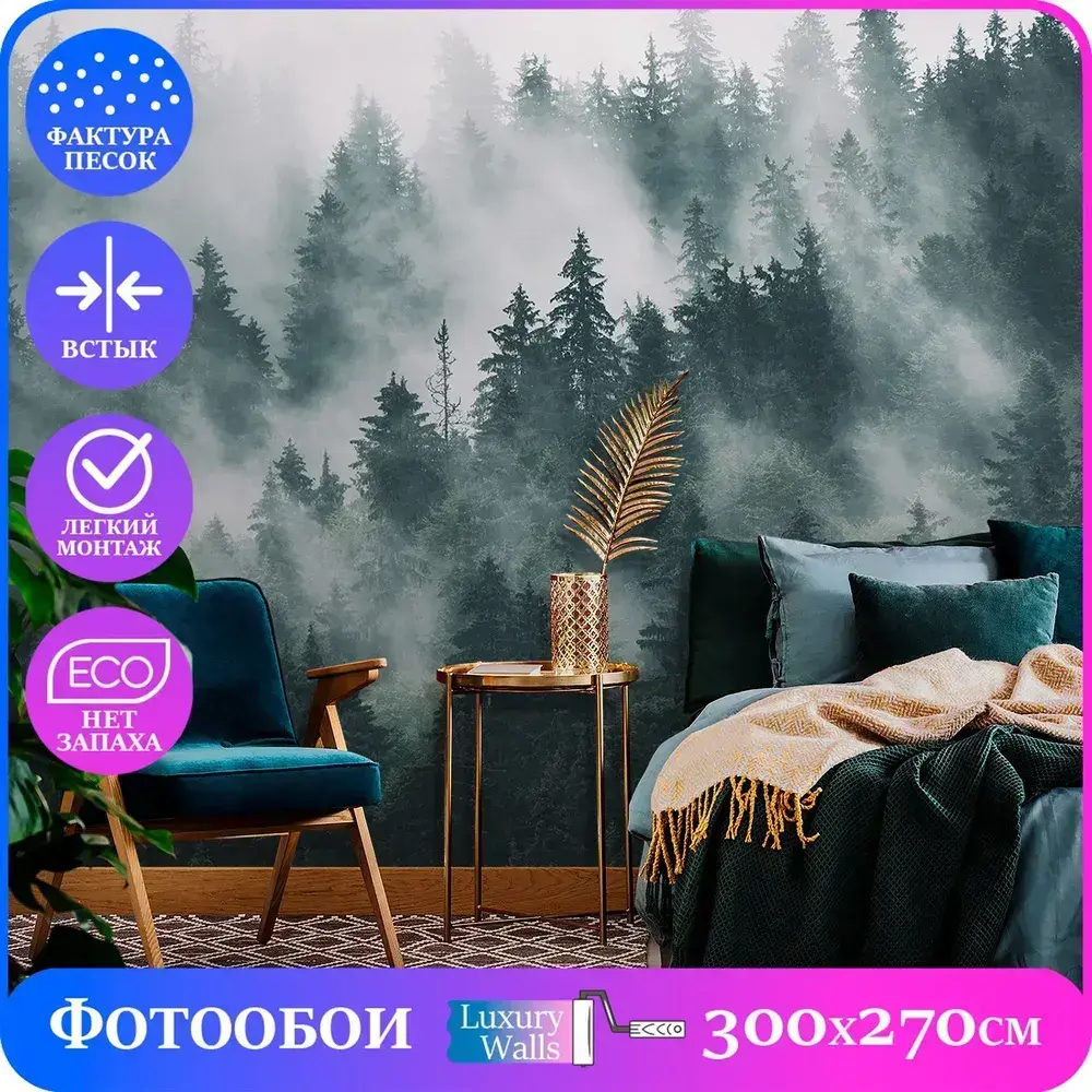 Фотообои 3d на стену флизелиновые Туманный лес 300х270 см Luxury Walls AM13103