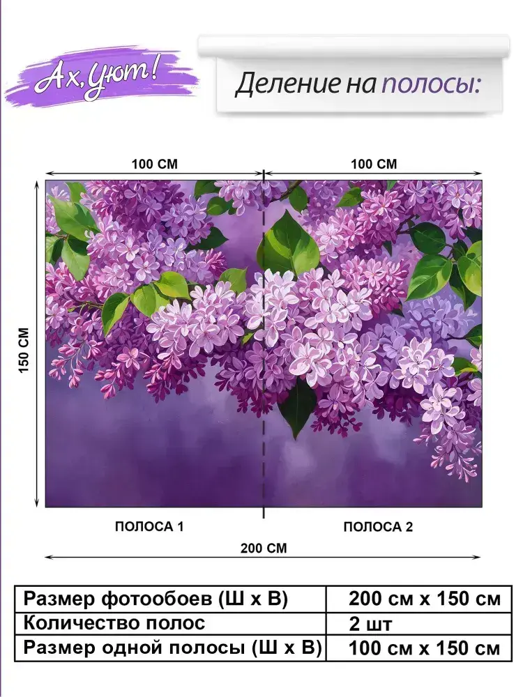Фотообои Ах, Уют! флизелиновые моющиеся 200х150 см Сиреневые Цветы сирени