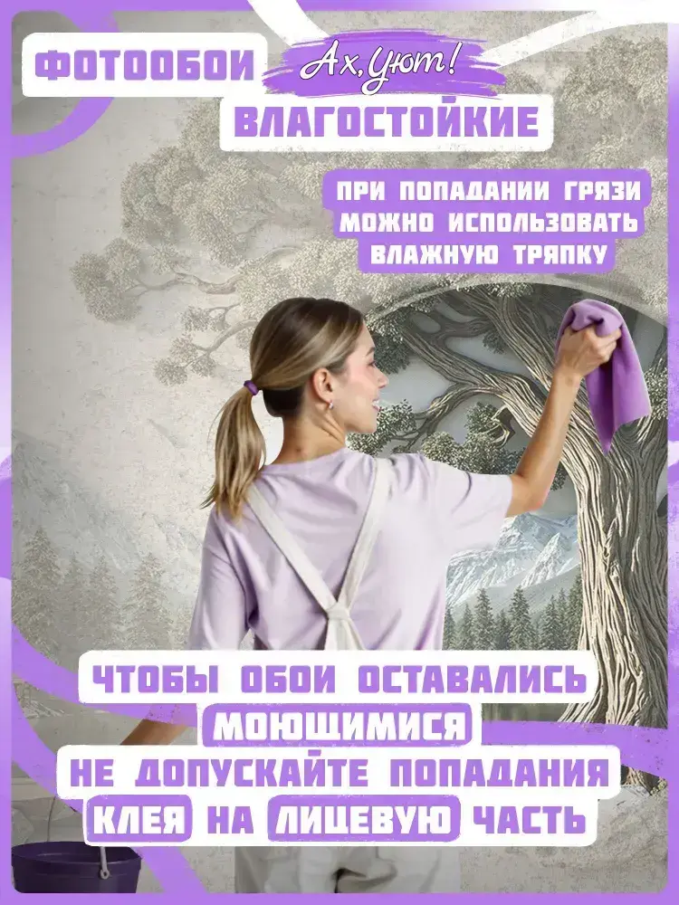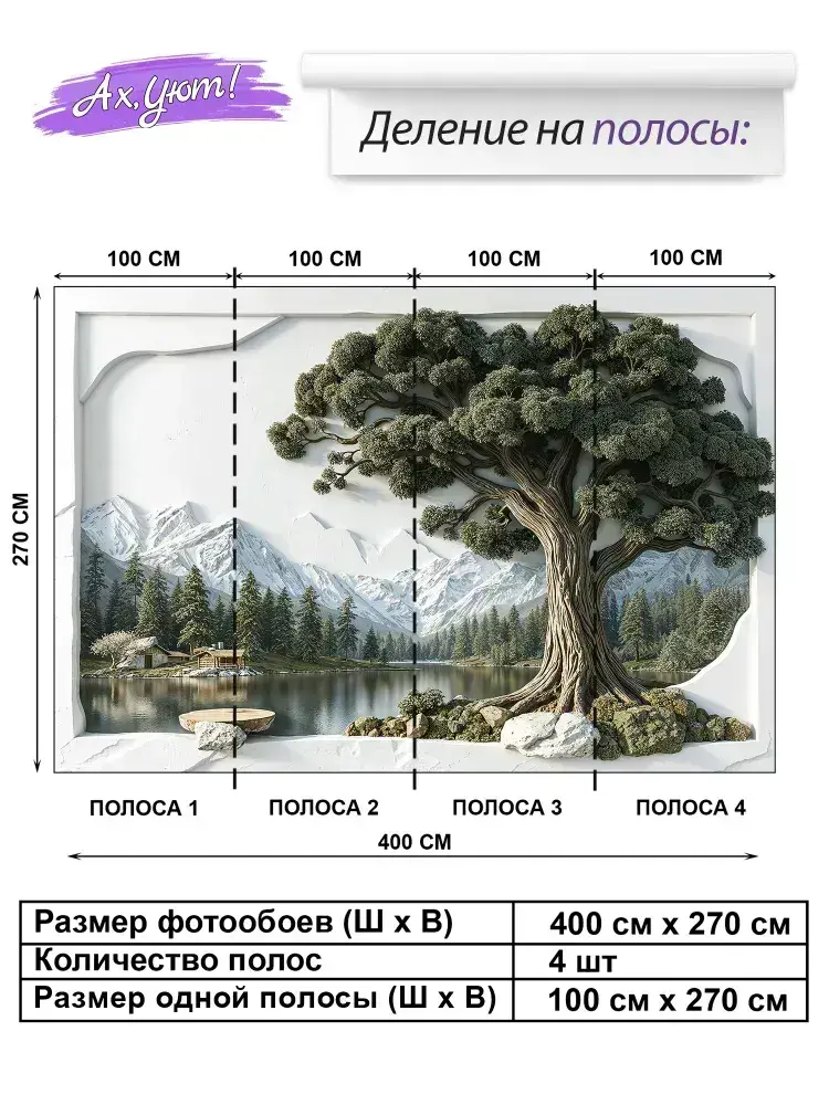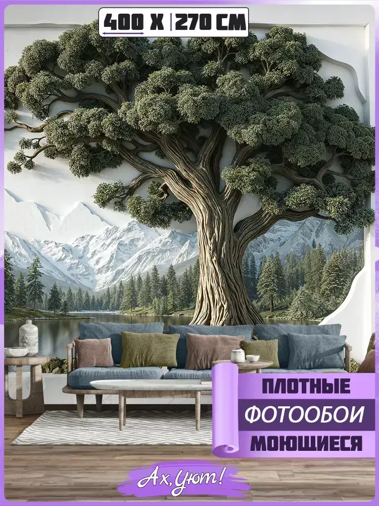Фотообои Ах,Уют флизелиновые моющиеся 3D-панно 400х270 Снежные горы и лес в тумане