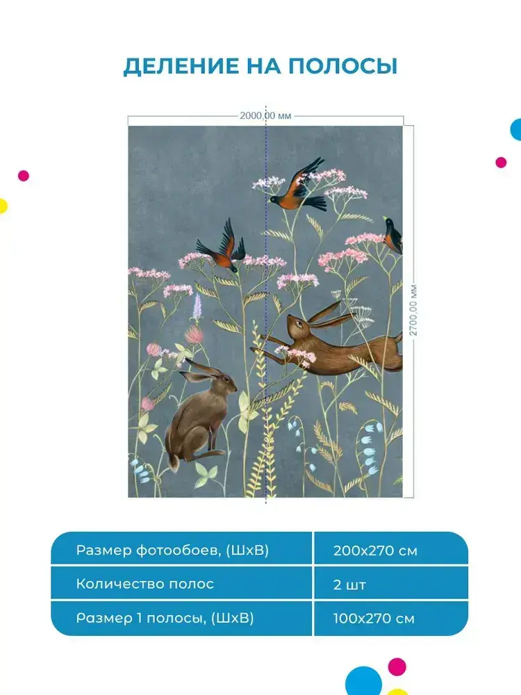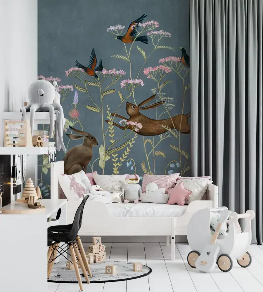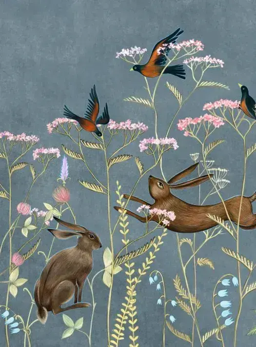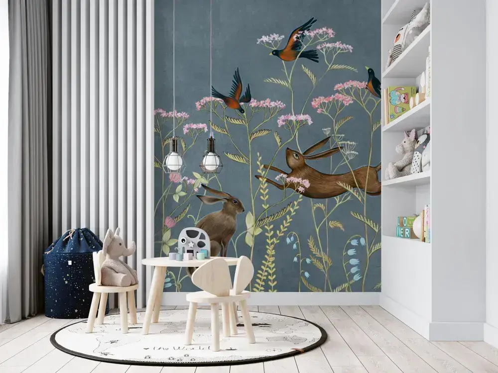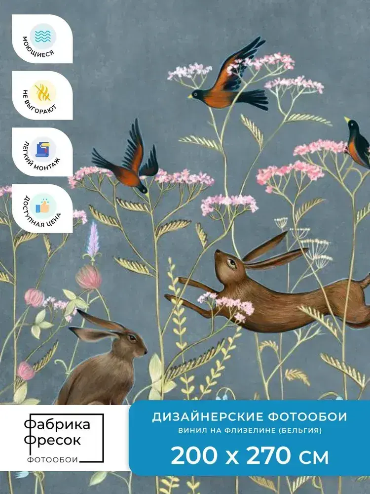 Фотообои флизелиновые ФабрикаФресок Зайцы в цветах 200х270см, обои в детскую, в спальню, гостиную