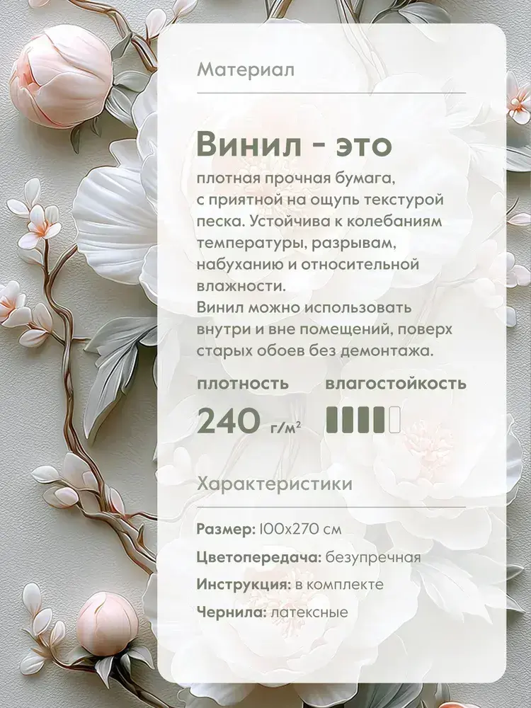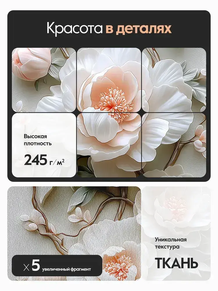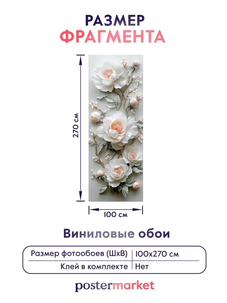 Фотообои флизелиновые PosterMarket "Цветы 3Д" 100х270 см