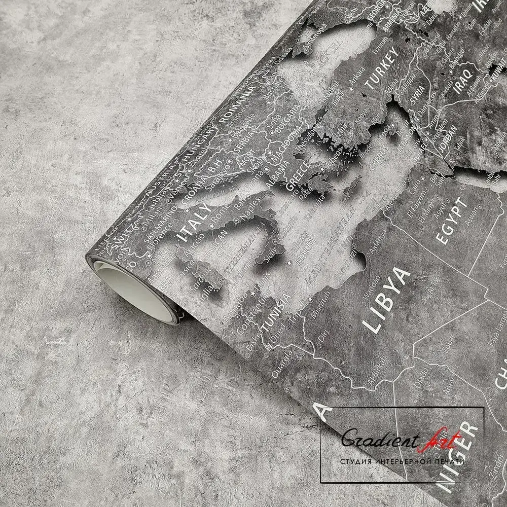 Фотообои карта мира бетон лофт "Карта мира" 315см x 270см флизелин премиум моющиеся GradientArt WM2B315270G
