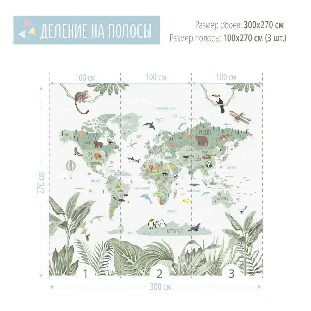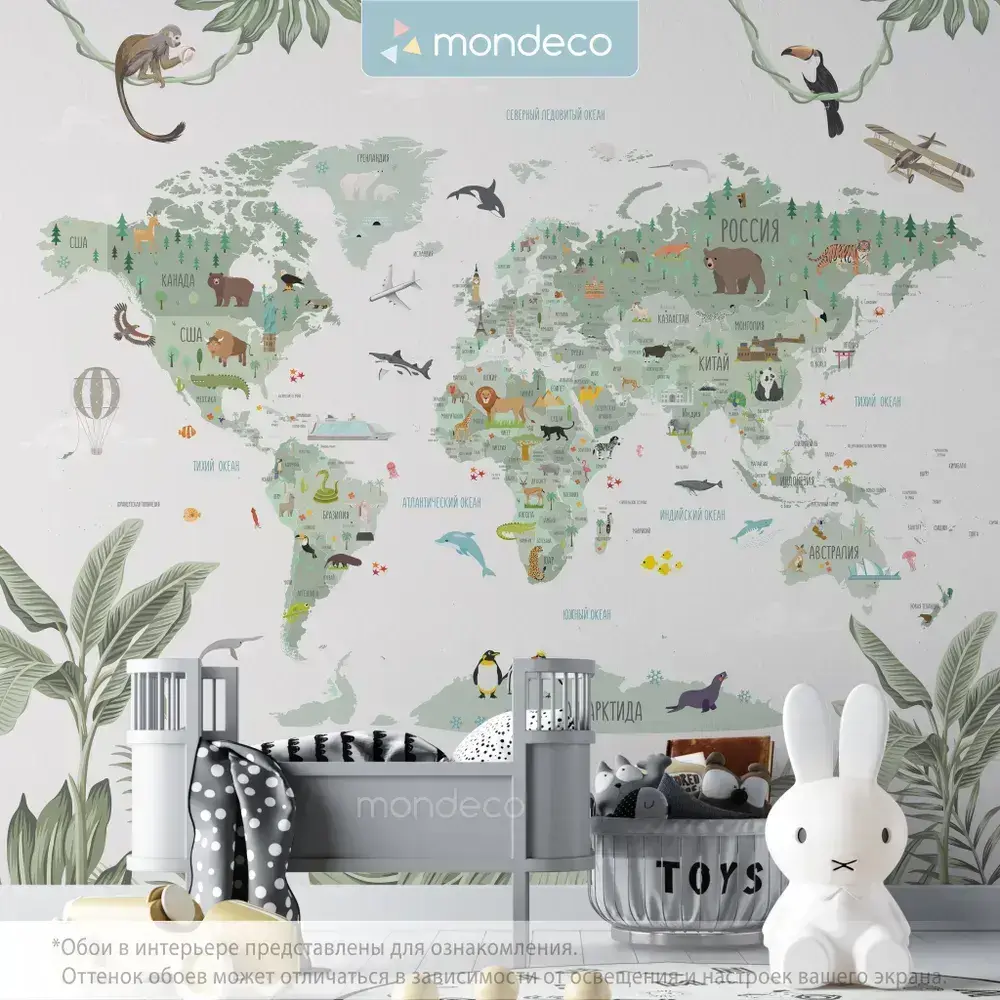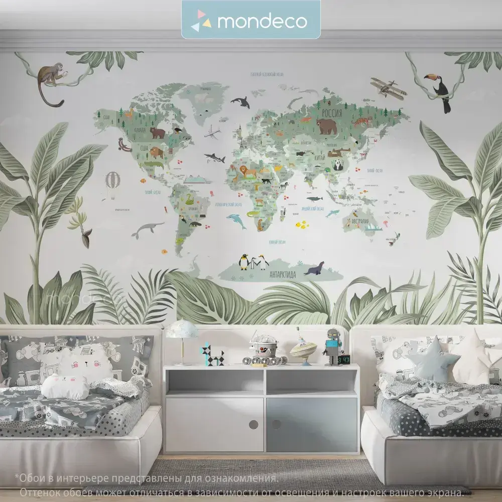 Фотообои Карта Мира детские 300*270 флизелиновые на стену для девочки для мальчика Mondeco