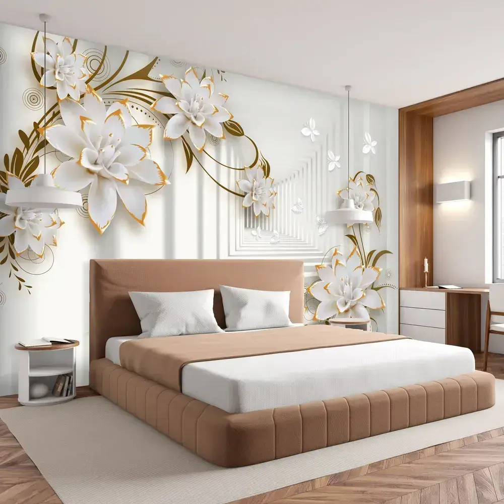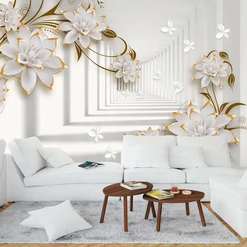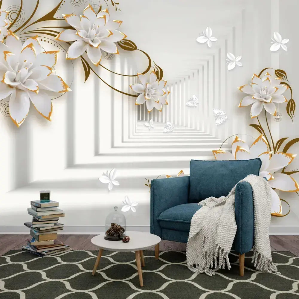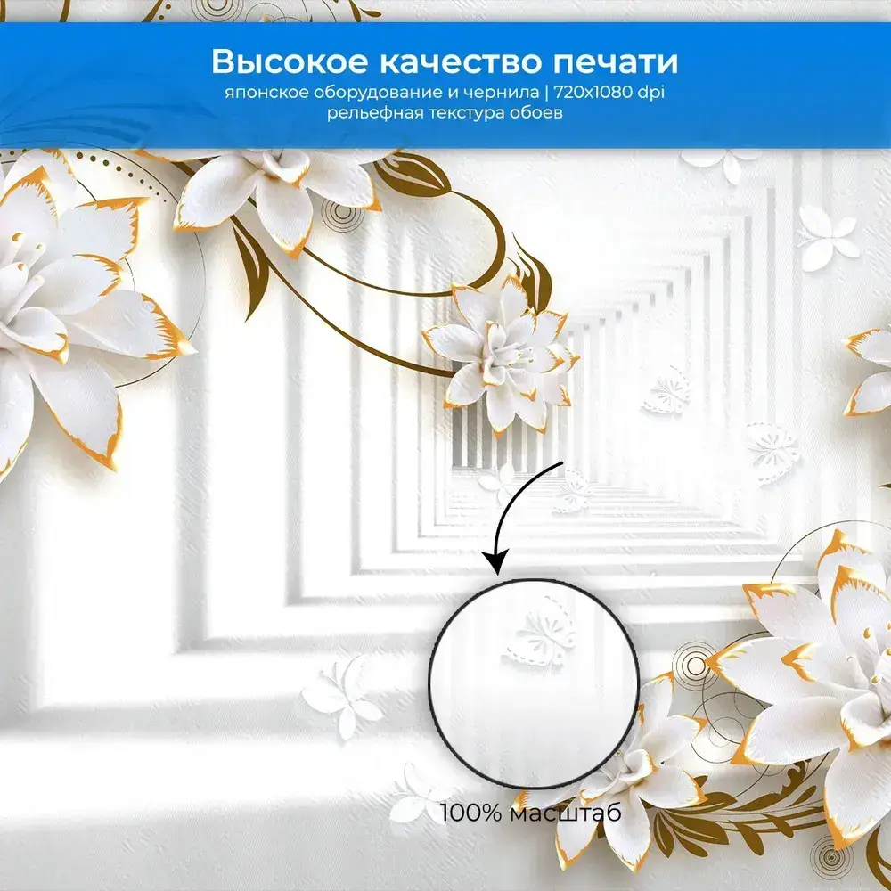 Фотообои на стену "Объемный проход украшенный авантажными цветами" 300х270см / виниловые на флизелиновой основе