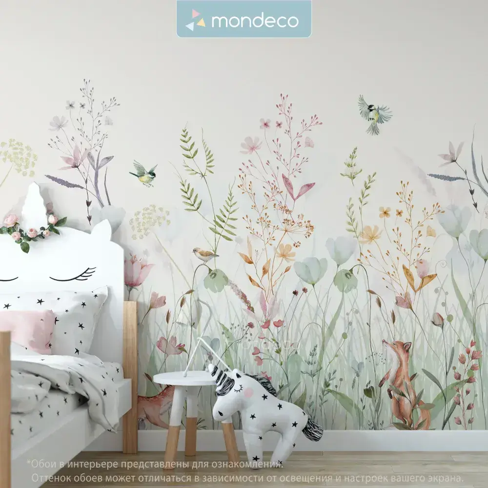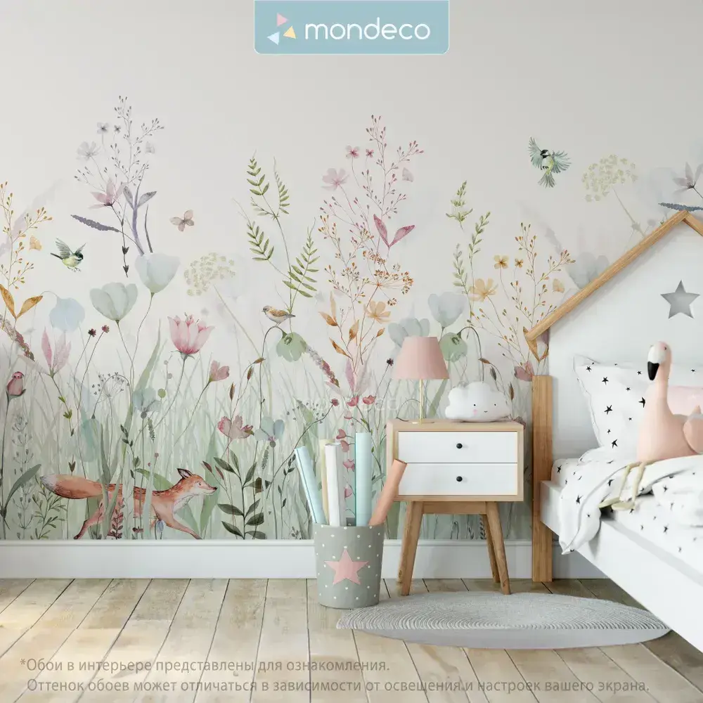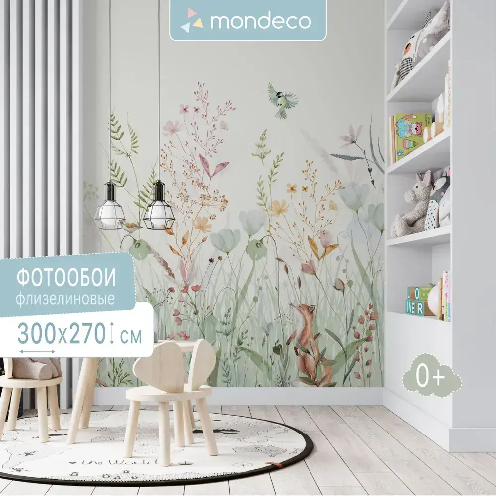 Фотообои на стену Цветы, Трава, Лисы 300*270 см флизелиновые Мондеко