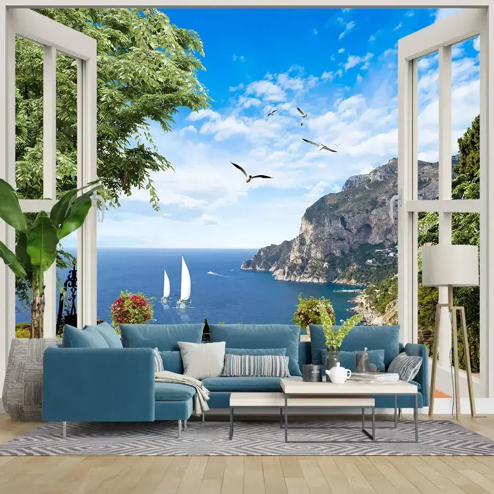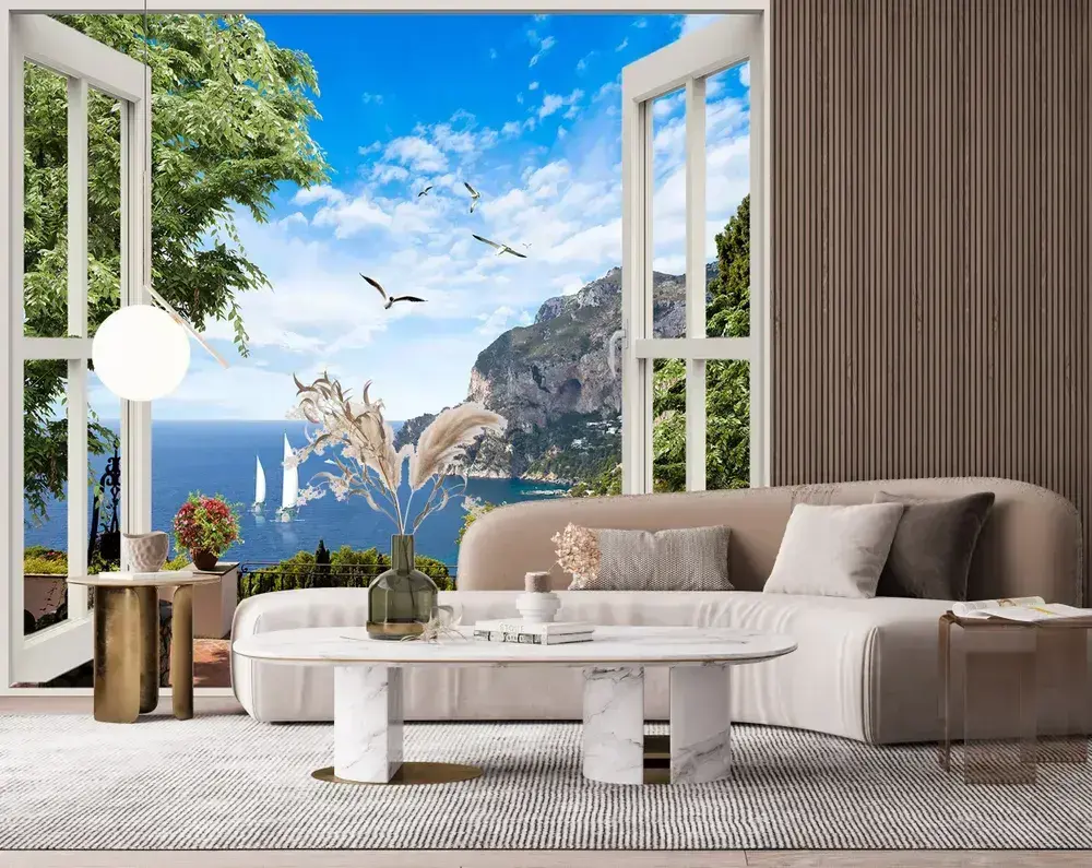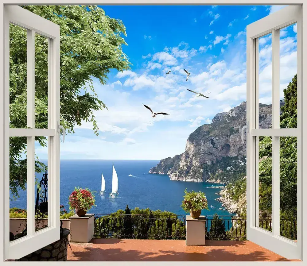 Фотообои на стену "Вид из окна на море" флизелиновые 300х260 см.