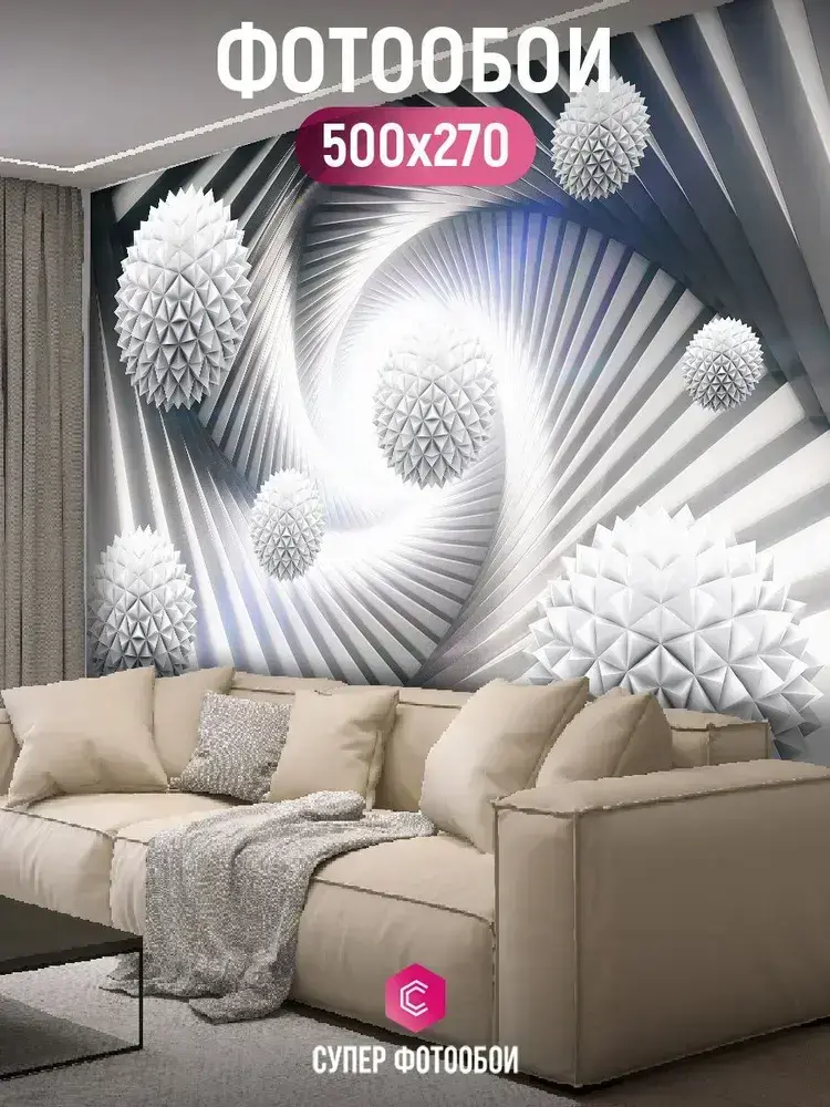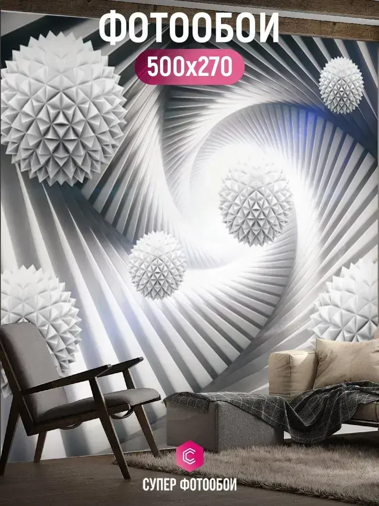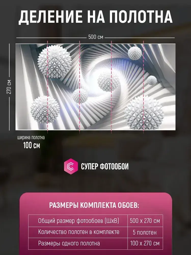 Фотообои Объемные белые колючие шары в туннеле 500x270 см