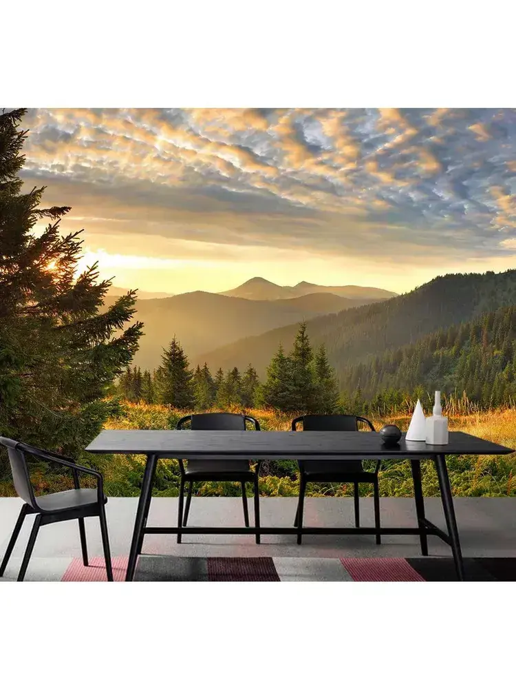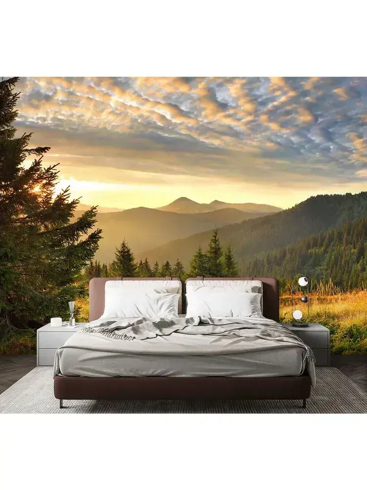 Фотообои пейзаж свидом на горы для спальни 300х270