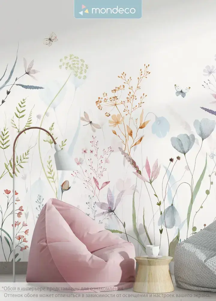 Фотообои Цветы акварельные 300*270 на стену флизелиновые фото обои в детскую