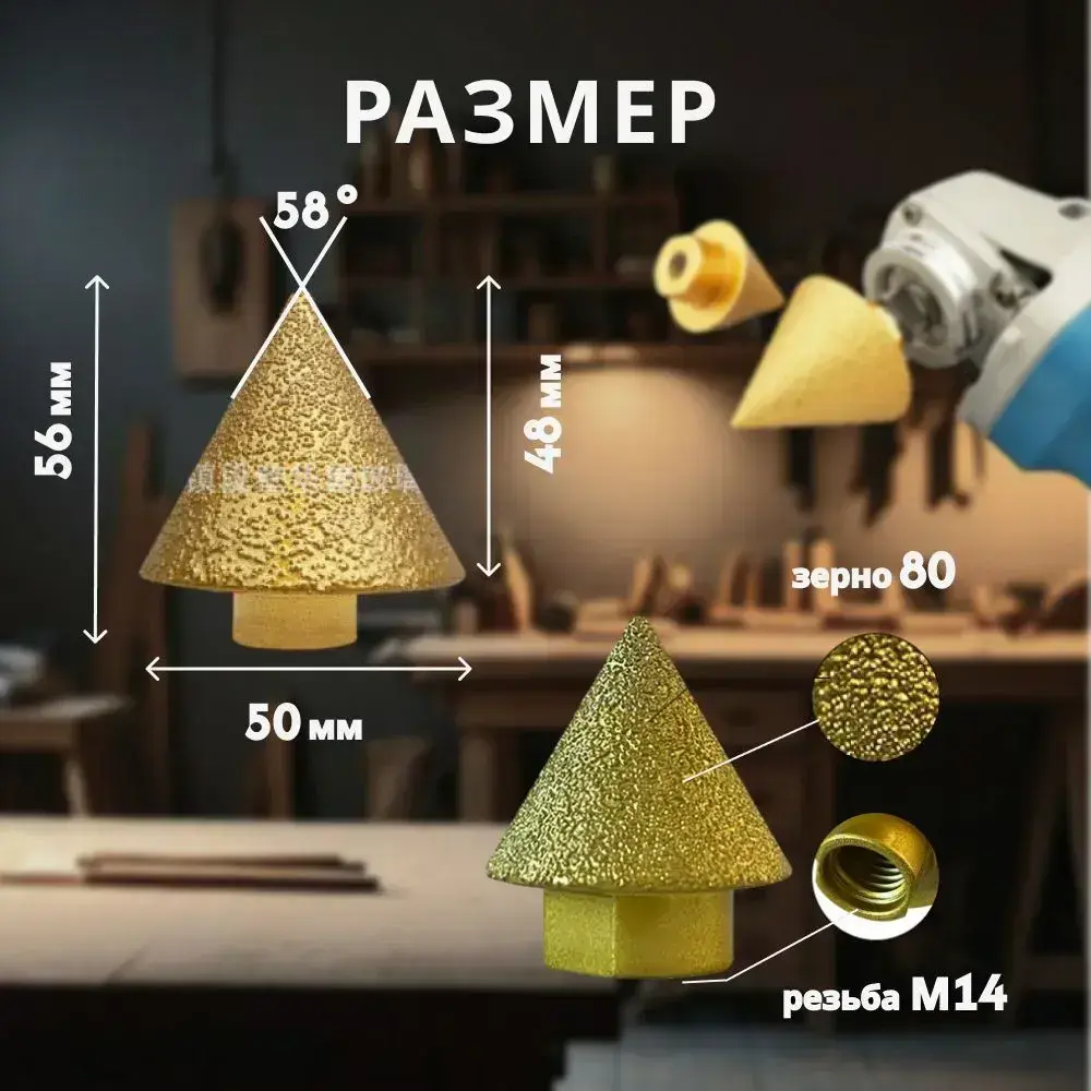 Фреза алмазная по керамограниту, конусная для УШМ, 50мм, Retail Result