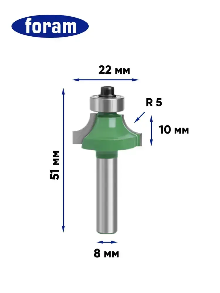 Фреза кромочная калевочная, FORAM, R5, хвостовик 8мм, подшипник 12,7мм