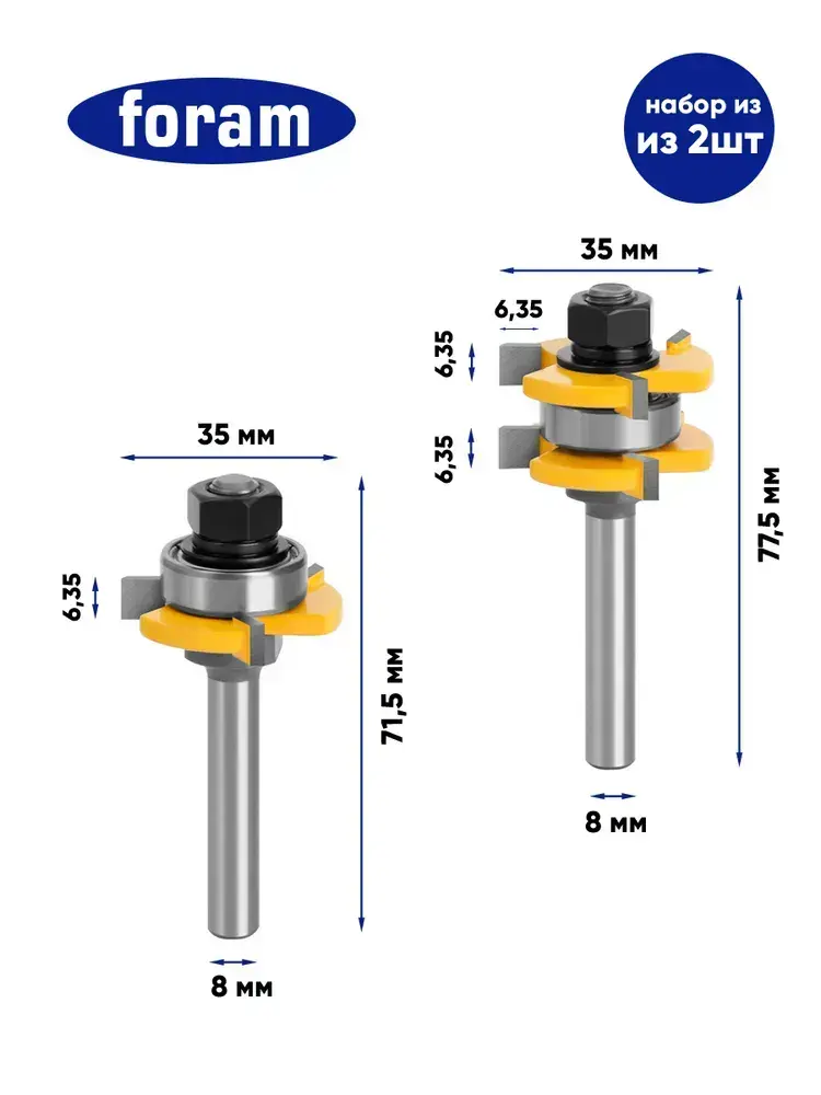 Фреза соединительная Шип Паз FORAM, хвостовик 8мм, Фреза Шип Паз