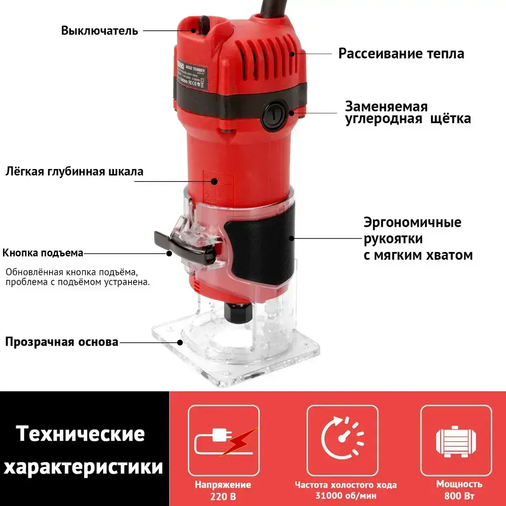 Фрезер по дереву электрический TEENO 800 Вт,цанга 6/6.35 мм,набор фрез 15 шт,31000 об/мин