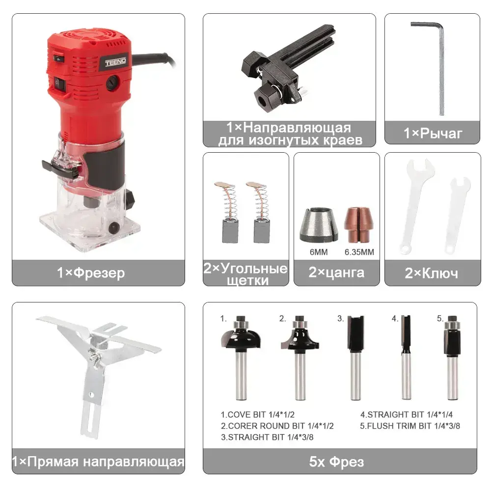 Фрезер по дереву электрический TEENO,5 фрез,15000-32000 об/мин,цанга 6/6.35 мм
