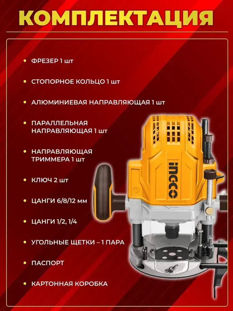Фрезер вертикальный INGCO RT160028 (фрезерная машина), 1600 Ватт, цанги 6/8/12мм, 22000 об/мин