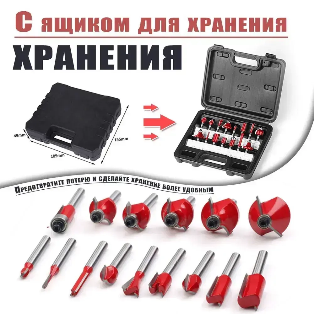 Фрезы для дерева, хвостовик 6.35 мм, набор 15 шт.