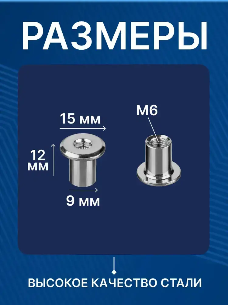 Гайка Эриксона М6 9x12 мм с плоской головкой, 4 шт