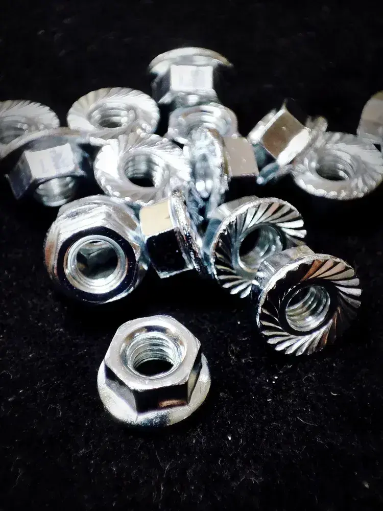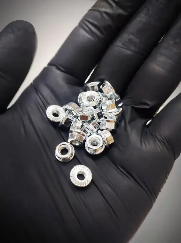 Гайка М4 с фланцем шестигранная, DIN6923 - 20 штук, стальная (оцинкованная) зубчатая, размер под ключ - 7мм