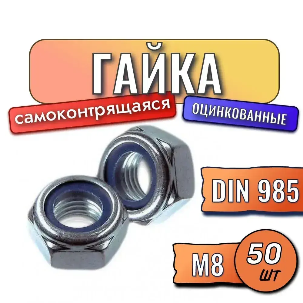 Гайка м8 50 шт самоконтрящаяся DIN 985 оцинкованная