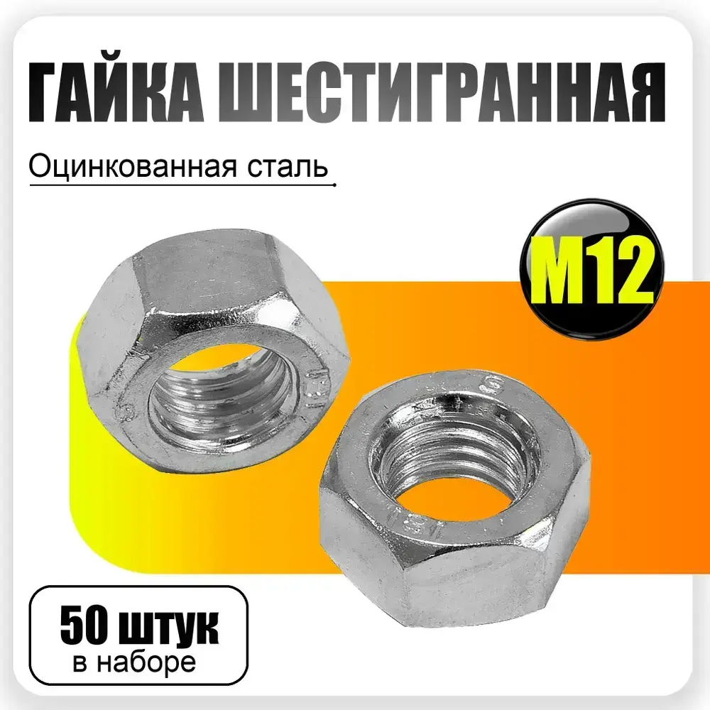Гайка шестигранная М12, 50шт., DIN 934 Оцинкованная