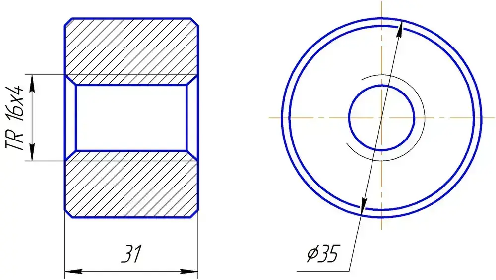 Гайка стальная трапецеидальная цилиндрическая KSM 16Х4
