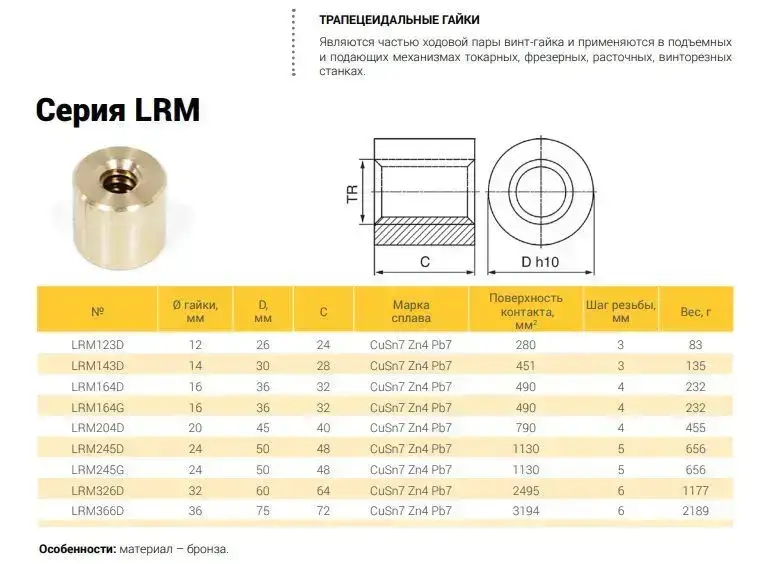 Гайка трапецеидальная (бронза) d24 мм, шаг резьбы 5 мм (прав. резьба), LRM 24-5-D TECHNIX PRO