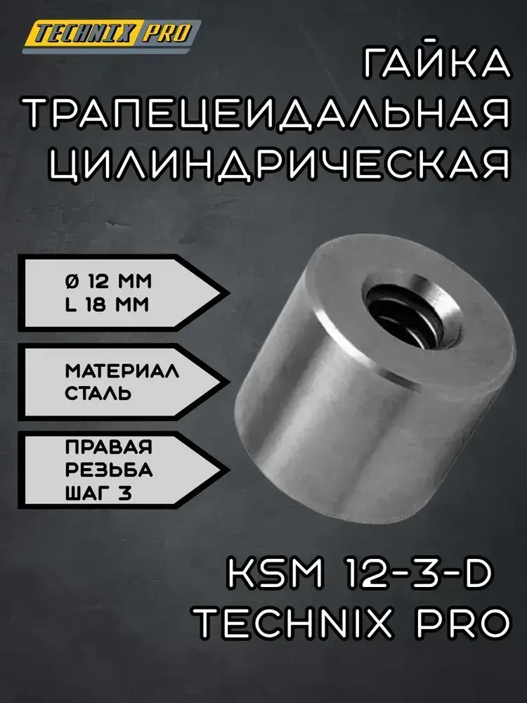 Гайка трапецеидальная (сталь) d12 мм, шаг резьбы 3 мм (прав. резьба), KSM 12-3-D TECHNIX PRO