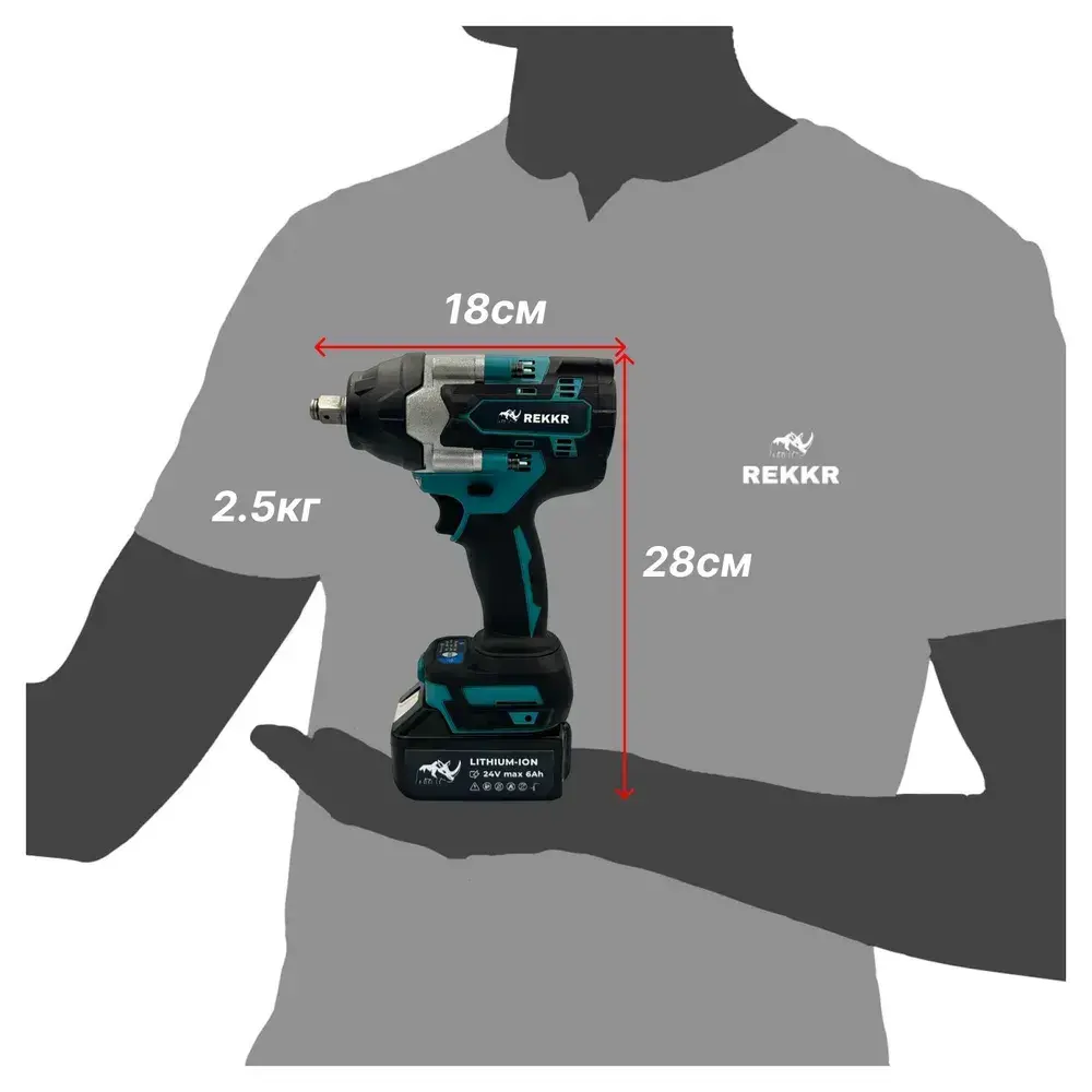 Гайковерт аккумуляторный, бесщеточный REKKR IW125BL, 2 аккумулятора 24В 6.0Ач, ударный, квадрат 1/2, кейс, зарядка