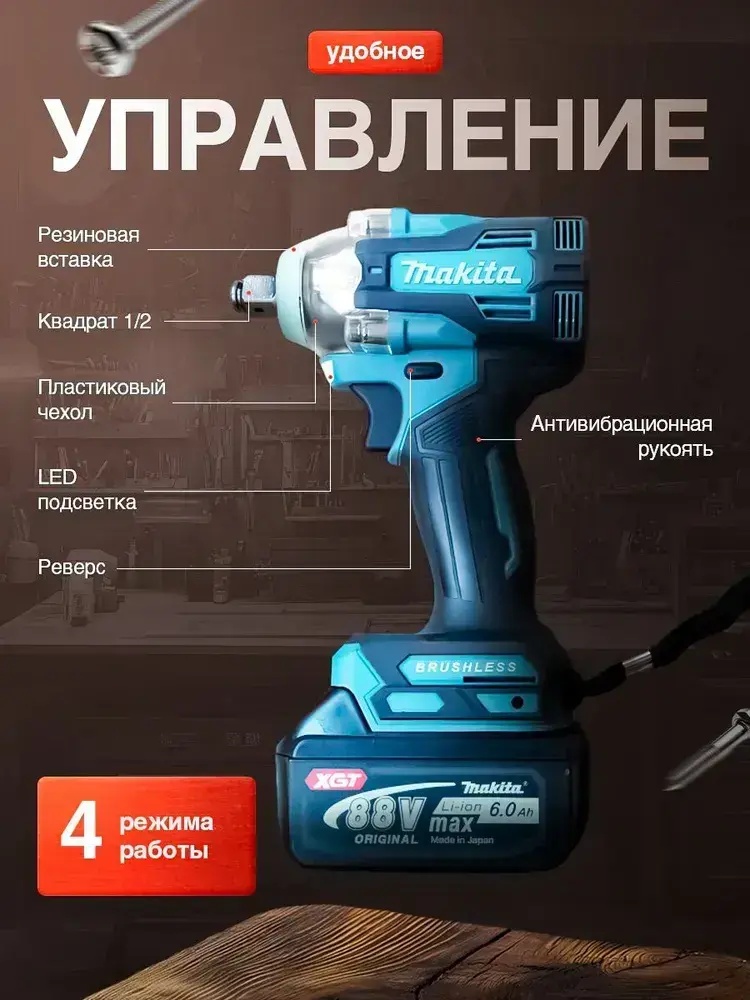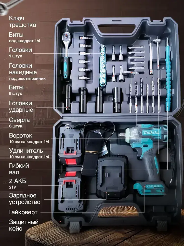 Гайковерт аккумуляторный с набором инструментов и трещеткой