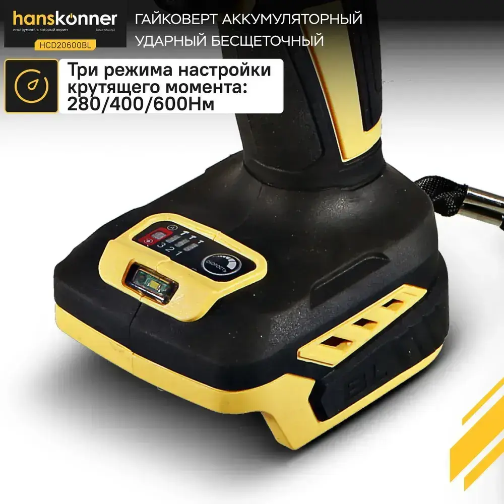 Гайковерт ударный бесщеточный Hanskonner, 18В, 600Нм, 1/2", без АКБ и ЗУ
