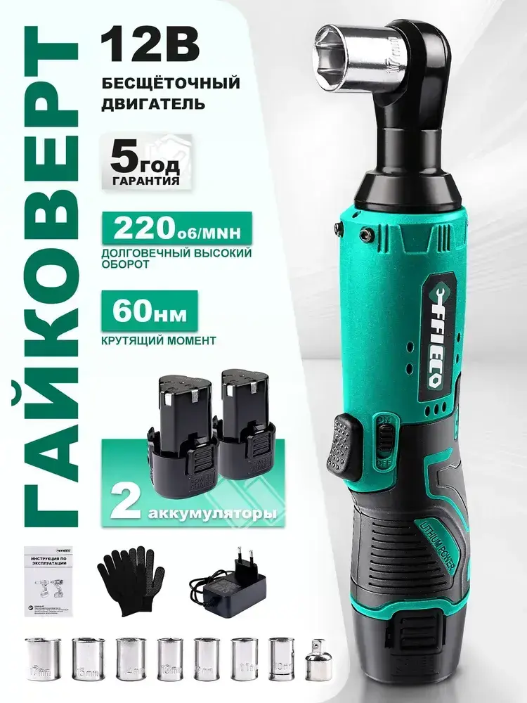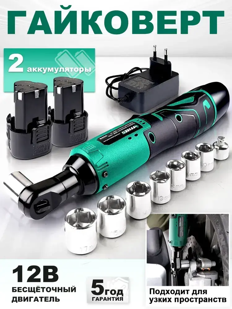 гайковерт ударный,бесщеточный, аккумуляторный,18 в, 2 батарея,3/8 дюйма