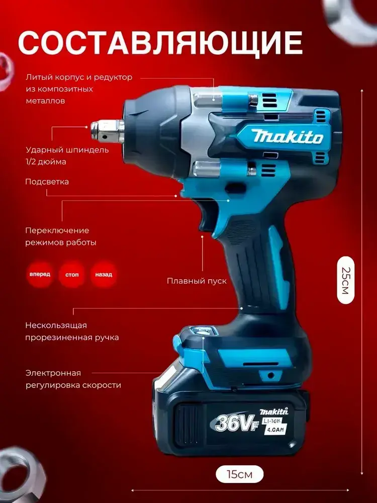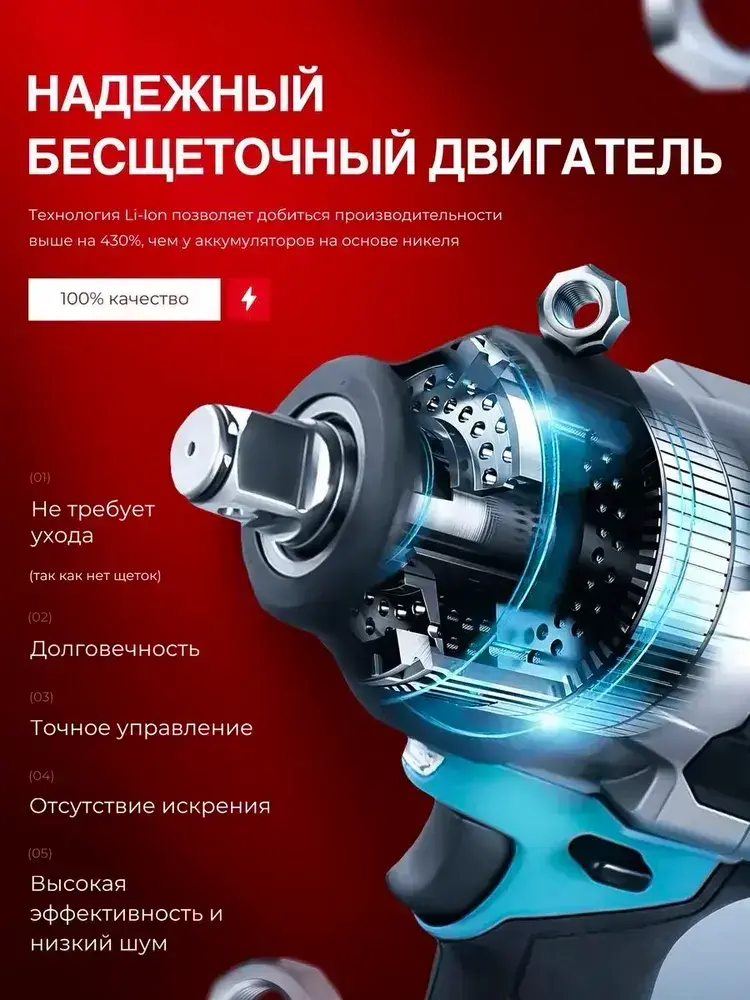 Гайковёрт аккумуляторный ударный, 2 АКБ