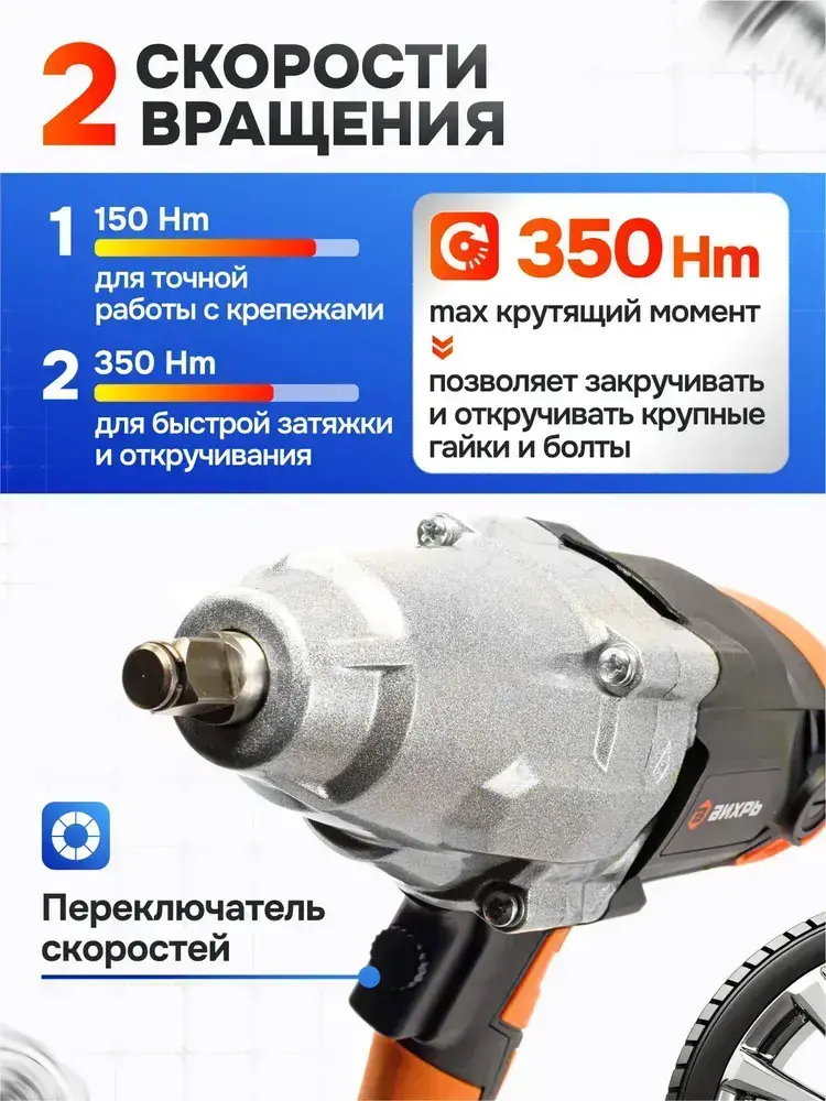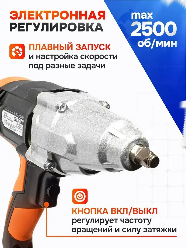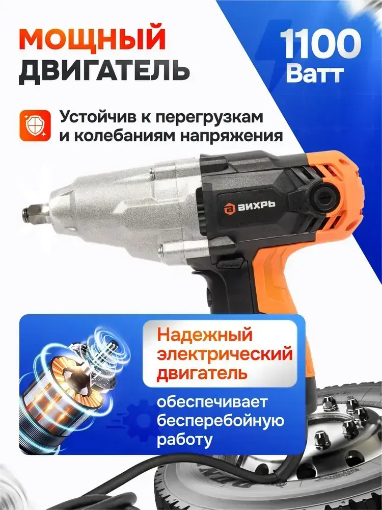 Гайковёрт сетевой ударный ГС-1/2 350 VI7 Вихрь (1100Вт, 350нМ, 2500 об/мин, Кейс+головки)