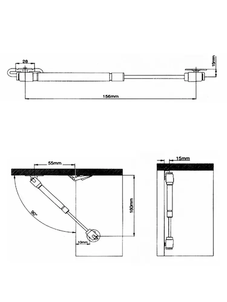 Газлифт мебельный короткий 160 мм усилие 60 N, 2 шт
