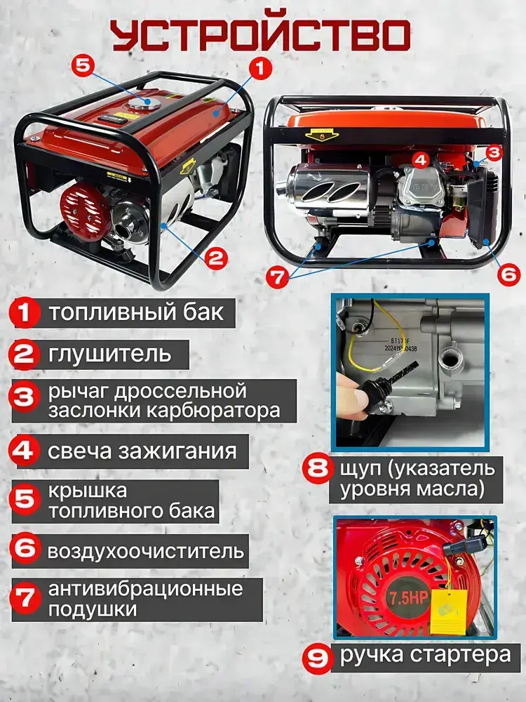 Генератор бензиновый 5,8 кВт 16А / РТ10_генератор