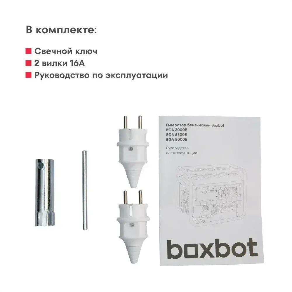 Генератор бензиновый Boxbot, 3.0 кВт, электростарт, 15 л, 2 розетки 16А, клеммы 230 В, BGA 3000E