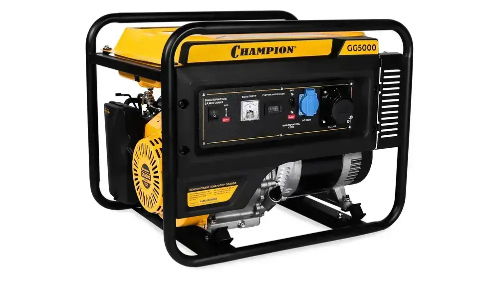 Генератор бензиновый CHAMPION GG5000 (5,5кВт, 15лс, 4-х тактный двигатель, бак 25л, 71кг, счетчик моточасов) / бензогенератор