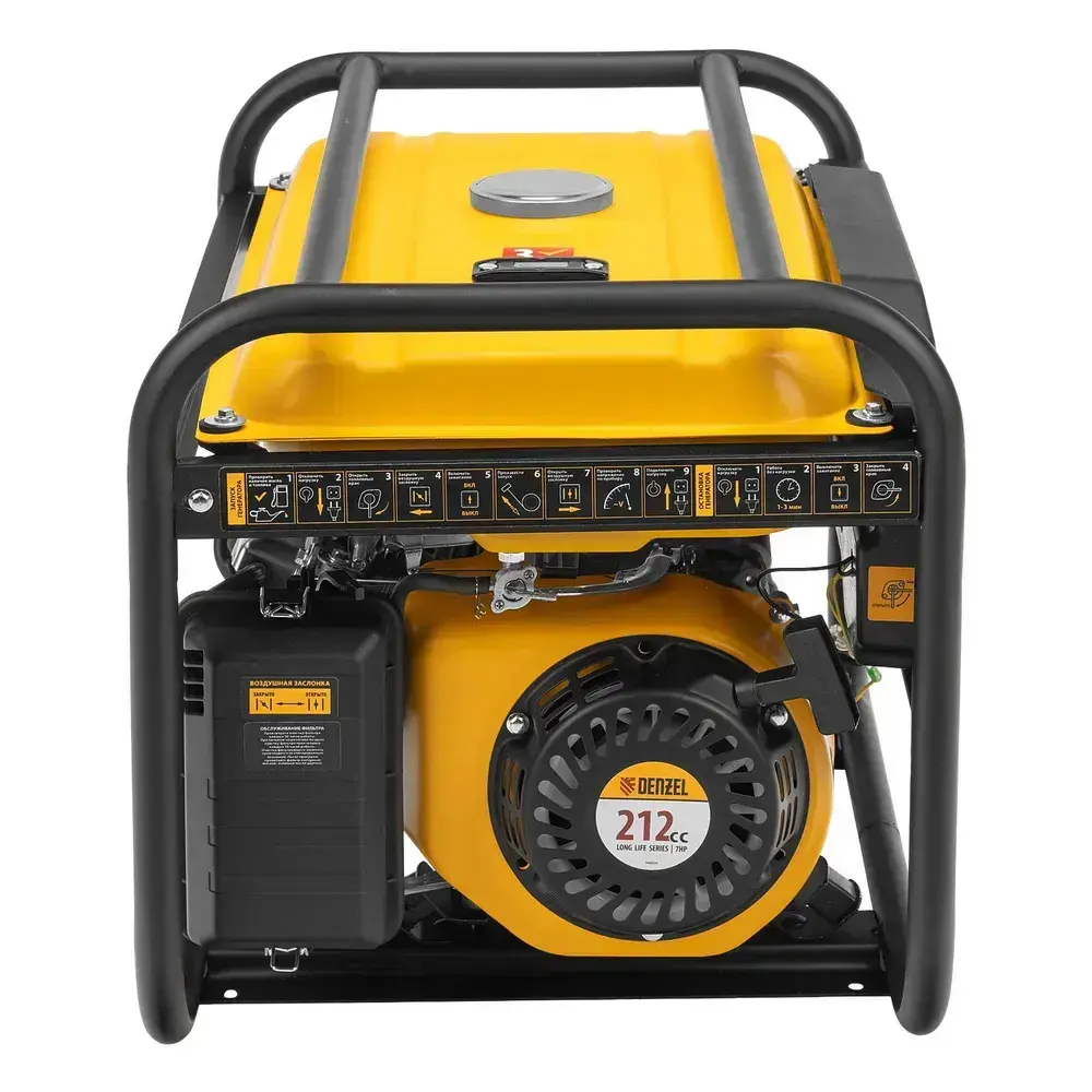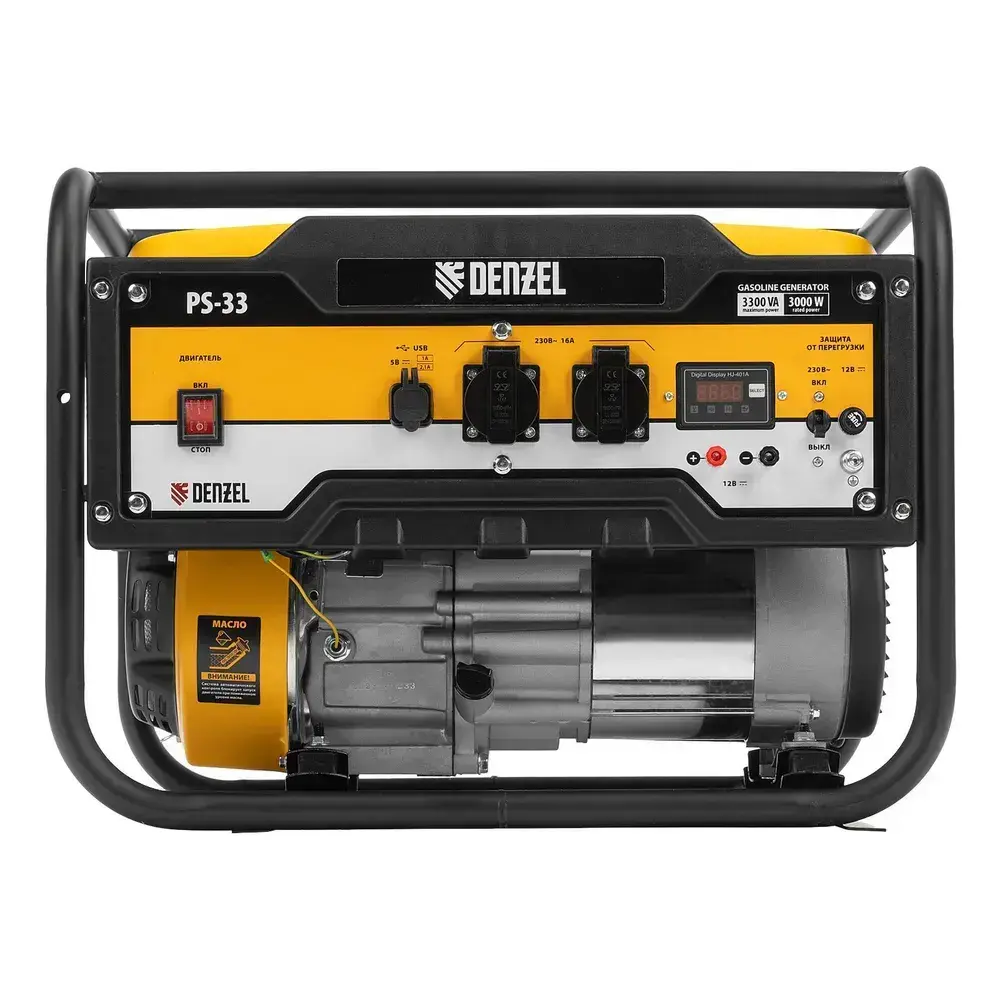 Генератор бензиновый DENZEL PS 33, 3.3 кВт и 212 см3 объем двигателя, 230 В и 15 л объем топливного бака, ручной стартер и блок AVR, 2 розетки 16 А и выход постоянного тока 12 В/USB 5В 946834