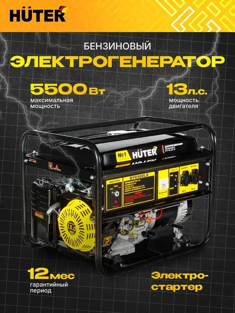 Генератор бензиновый DY6,5LX-электростартер Huter 5кВт