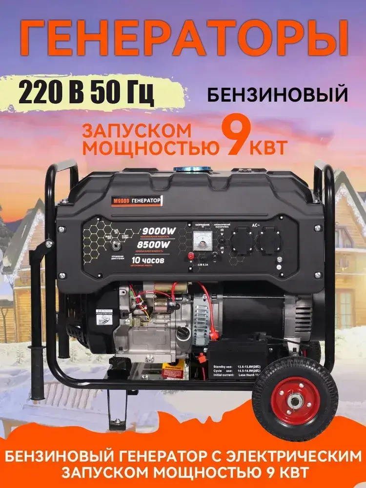 Генератор бензиновый электрический 9кВт, 220В Электрический пуск
