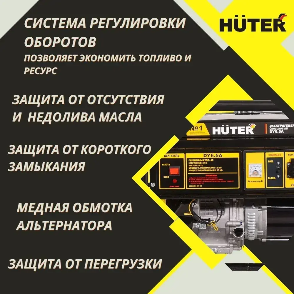 Генератор бензиновый Huter DY6.5A / 5,5 кВт с ручным стартером
