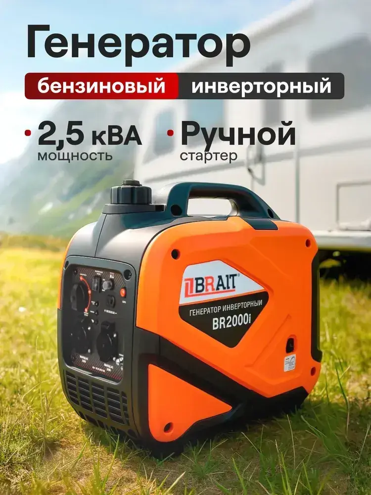 Генератор бензиновый инверторный Brait BR-2000i ( 2 кВт, бак 5.6 л, ручной запуск ) / бензогенератор / резервный источник питания