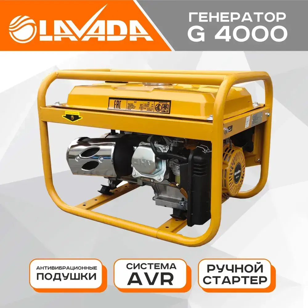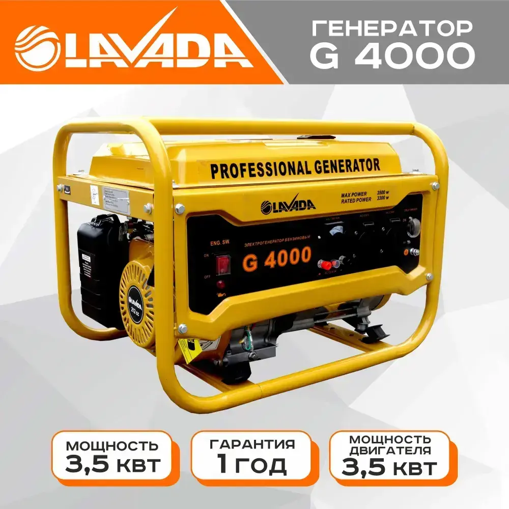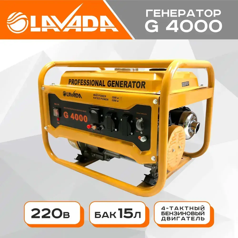 Генератор бензиновый портативный Lavada G4000 (Электрогенератор, Бензоэлектростанция) (3.3 - 3.5 кВт, 220В, бак 15л.)