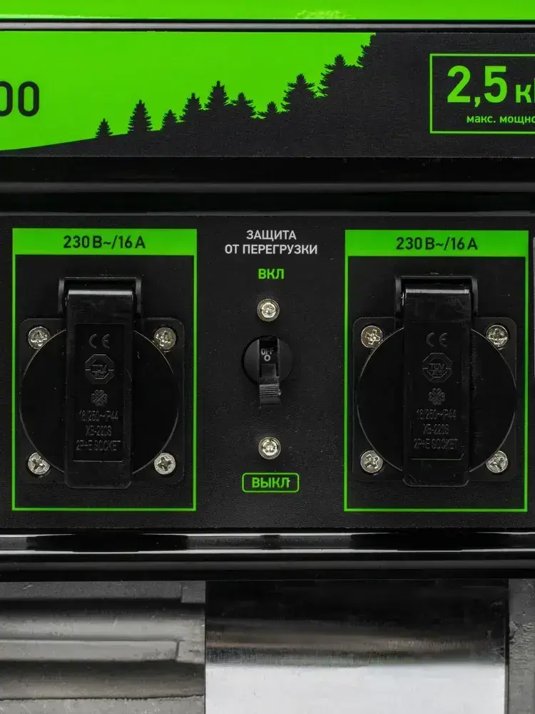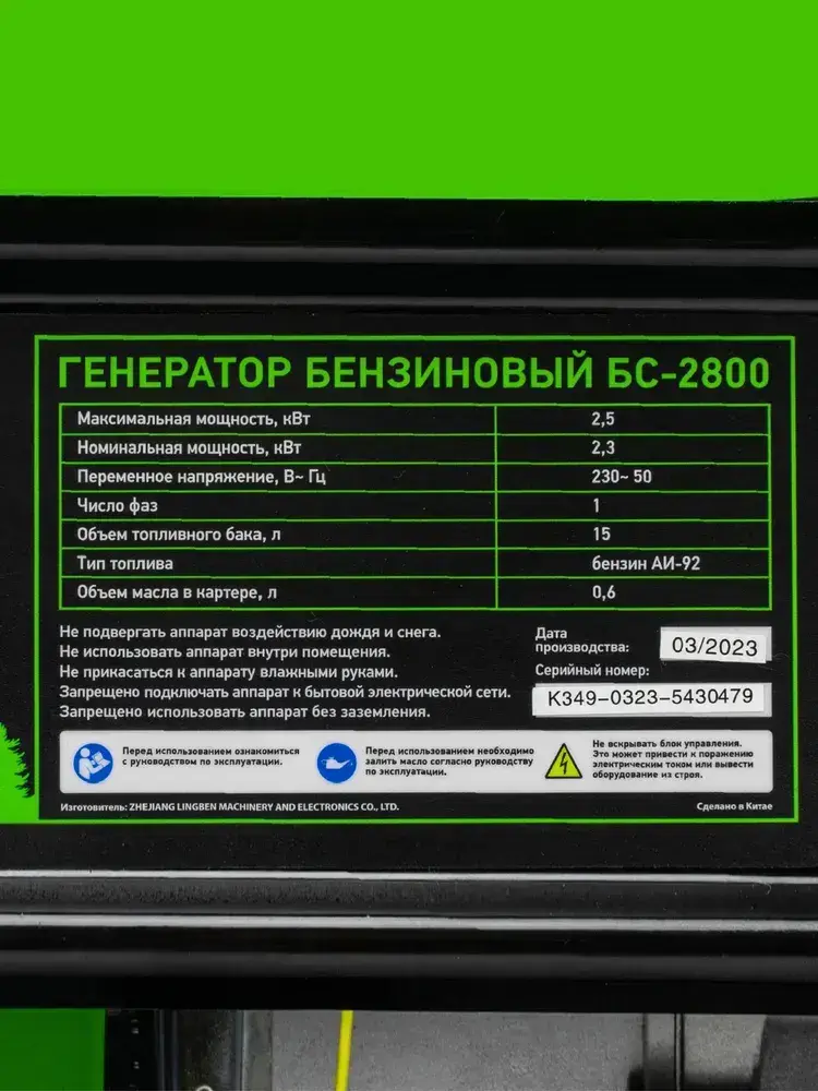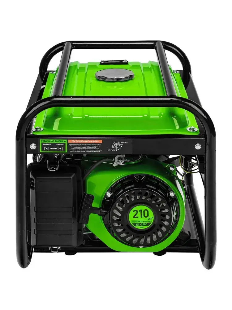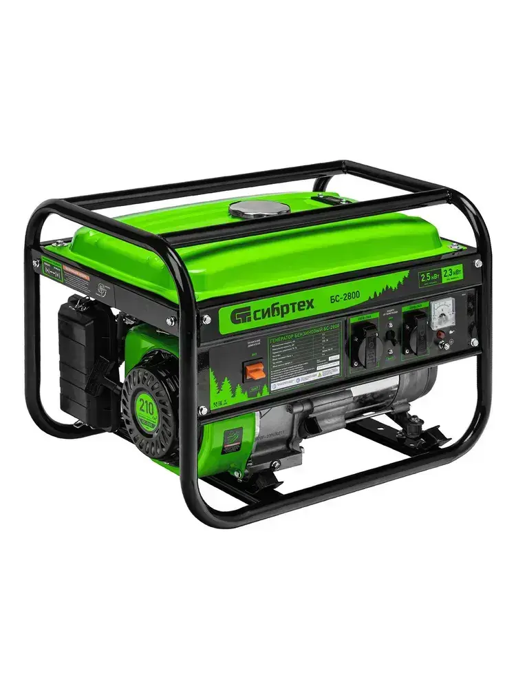 Генератор бензиновый СИБРТЕХ БС-2800, 2.5 кВт мощность и 210 см3 объем двигателя, 15 л объем топливного бака, ручной стартер, блок AVR, 2 розетки и датчик уровня масла, 94543