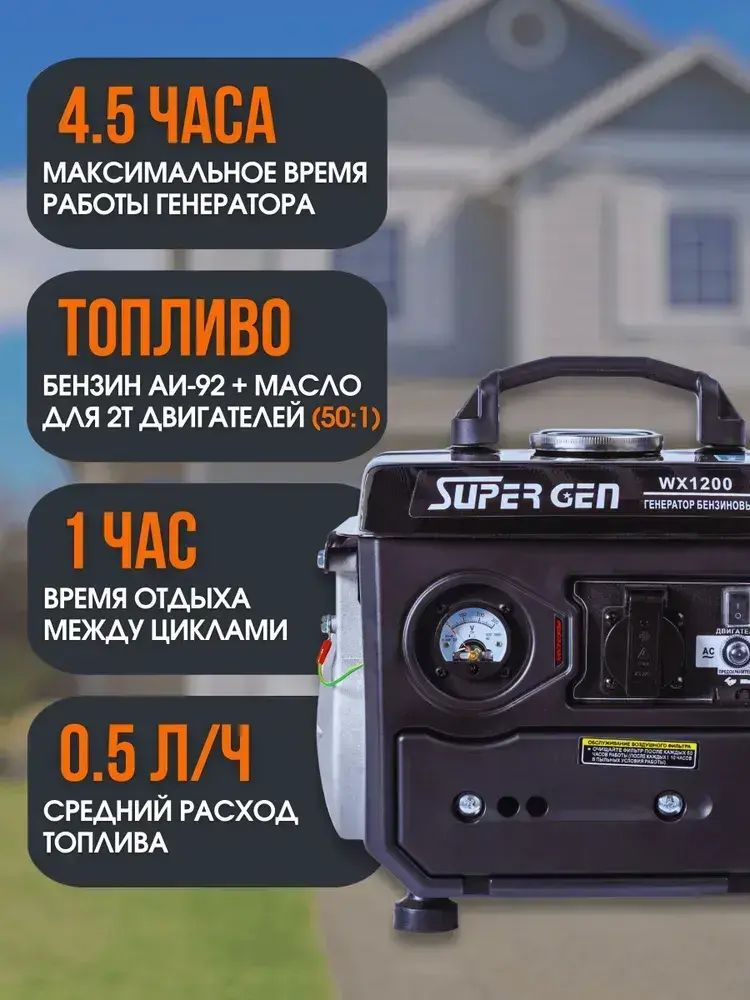 Генератор бензиновый SUPER GEN WX-1200 1,2 кВт