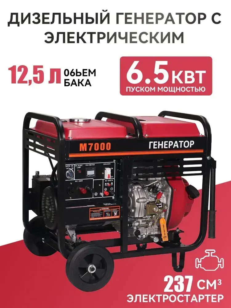 Генератор дизельный 6.5 кВт Медная обмотка 50 Гц Электрический пуск