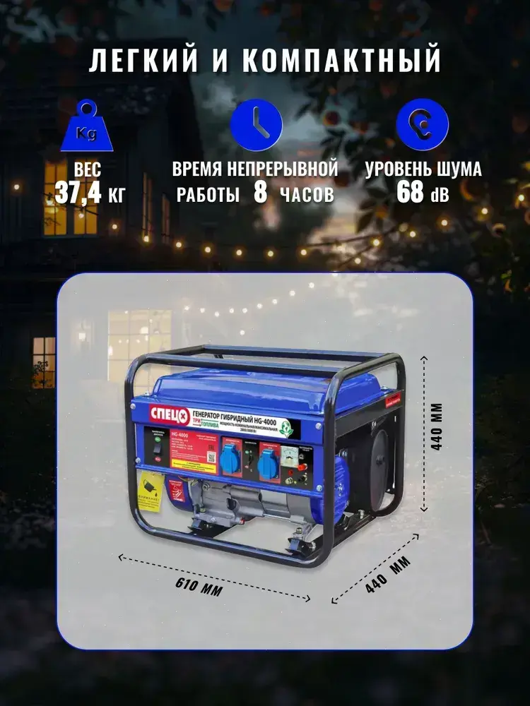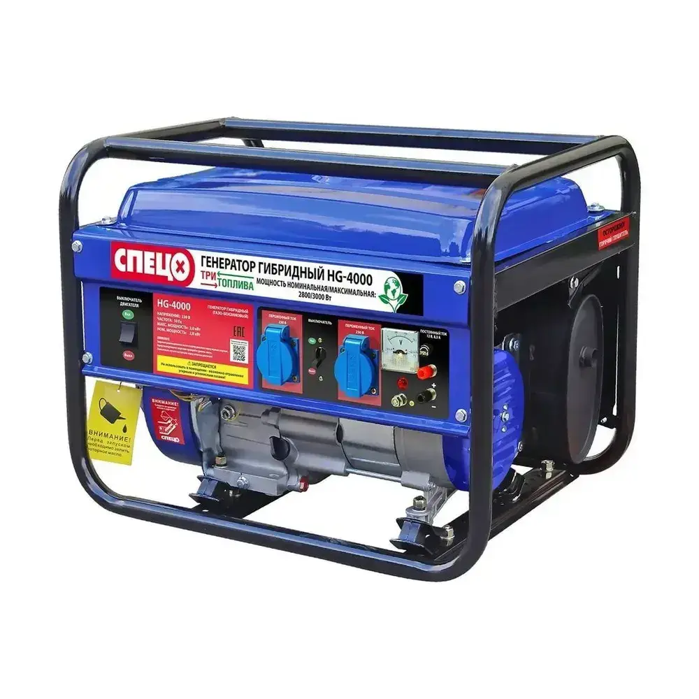 Генератор гибридный газ-бензин Спец HG-4000 ( ТРИ ВИДА ТОПЛИВА, 3000 Вт)
