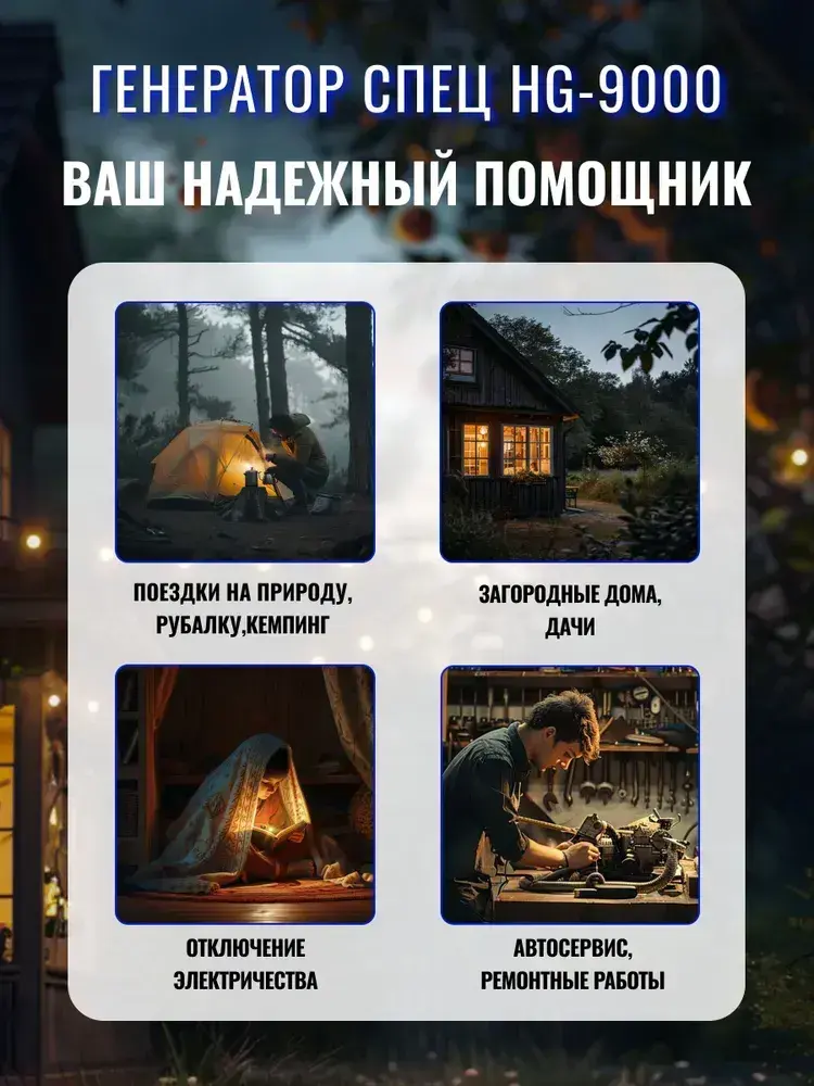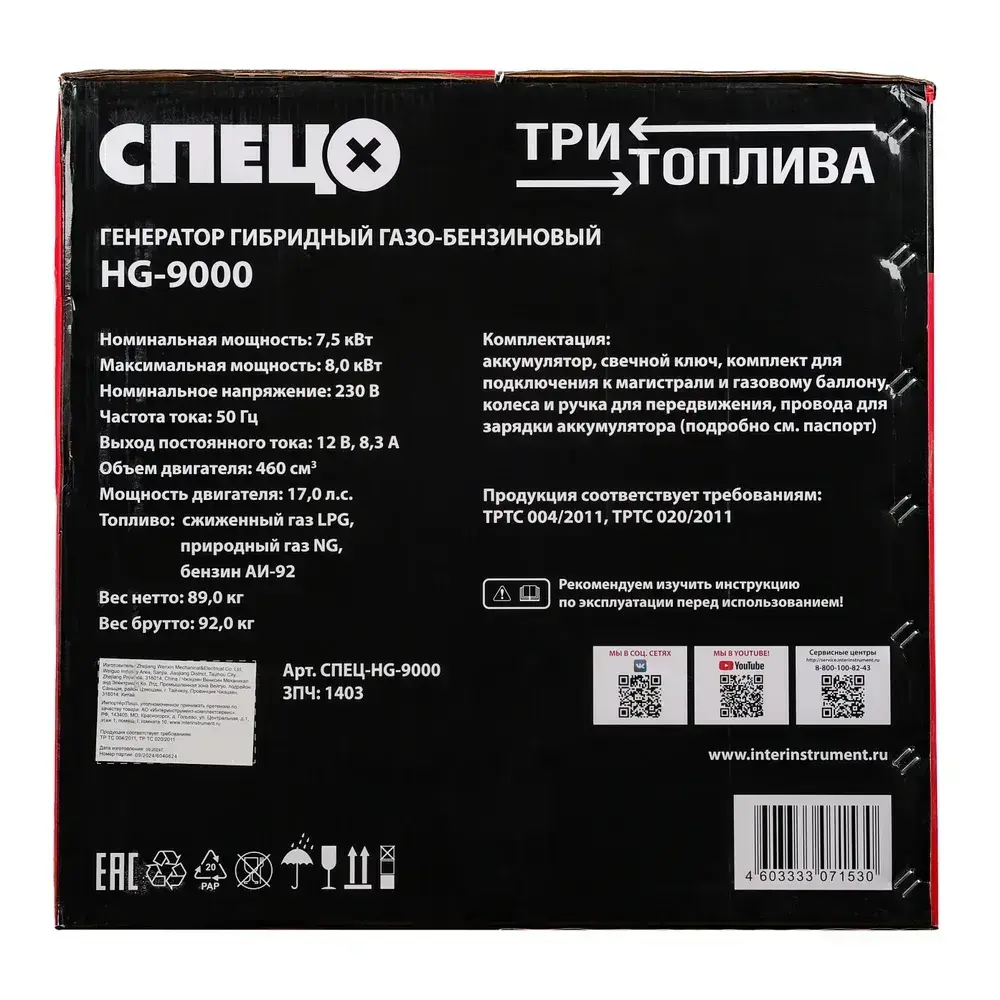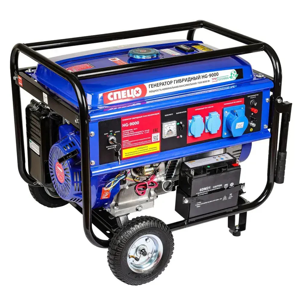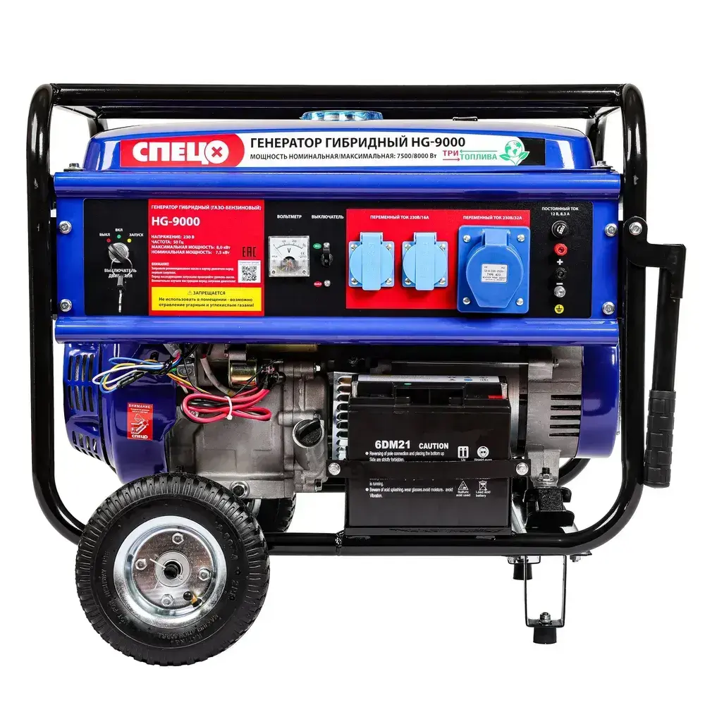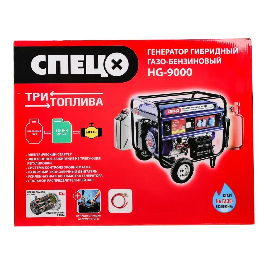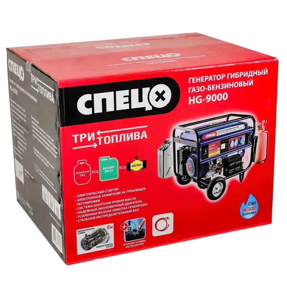 Генератор гибридный газ-бензин Спец HG-9000 ( ТРИ ВИДА ТОПЛИВА, 8000 Вт, АКБ в комплекте)